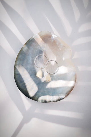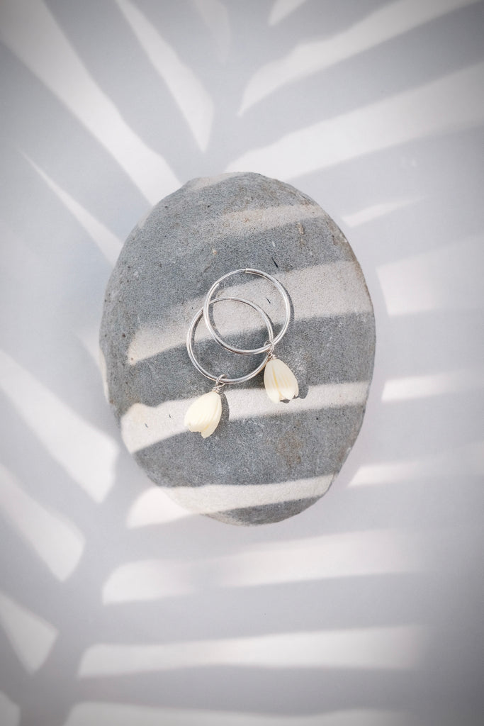 ✦ DETAILS ✦ ✧ Name: Pikake - (pea KAH kay) - Jasmine. ✧ Sterling Silver Hoops. ✧ Carved Resin Pikake Beads ✧ Hoops measure 20mm x 1.5mm thick. ✧ Unless otherwise noted in the listing description, all pieces are sold individually. Photos with models/multiple pieces are for style inspiration only.