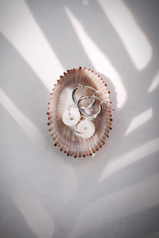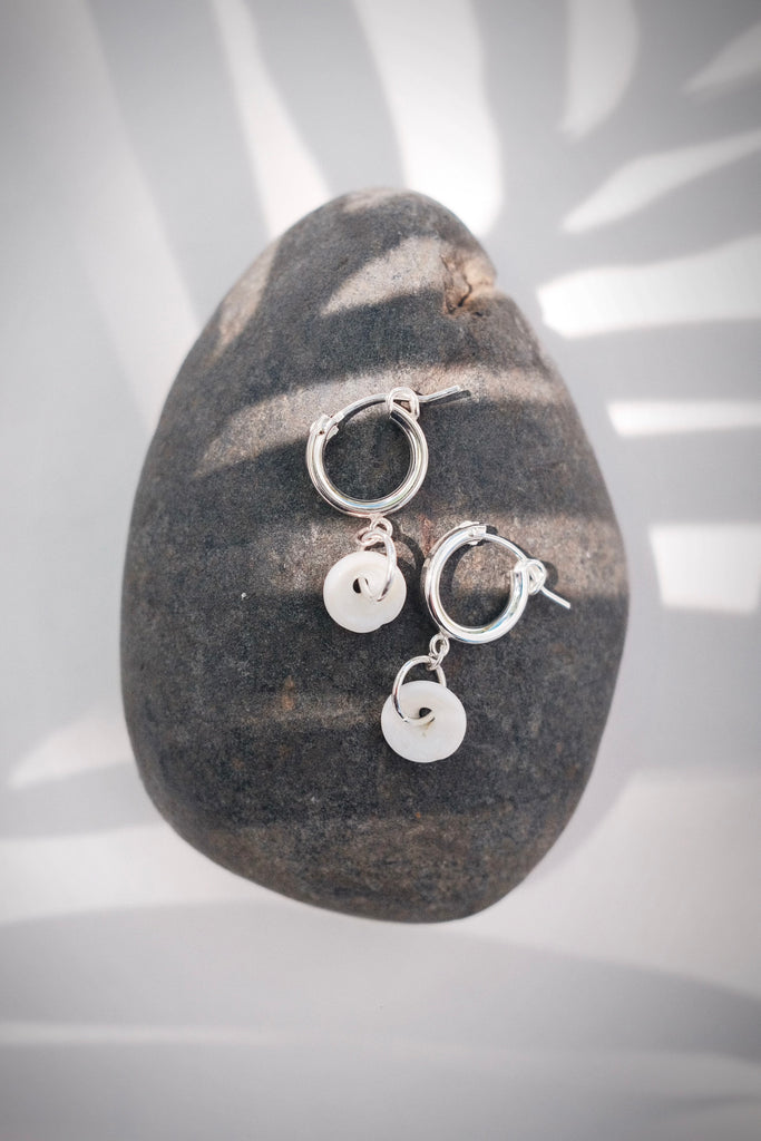 ✦ DETAILS ✦ ✧ Name: Kahale (kah-HA-leh) - home. ✧ Sterling Silver w/ natural Puka shells. ✧ 3cm Drop Length. ✧ 13mm hoop outer diameter, 9mm inner diameter, & 2.2mm hoop thickness. ✧ Unless otherwise noted in the listing description, all pieces are sold individually. Photos with models/multiple pieces are for style inspiration only.