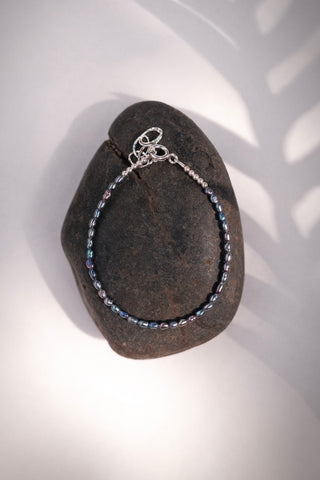 ✦ DETAILS ✦ ✧ Name: Maile (MIE-leh) - vine. ✧ Adjustable Length from: 6"-7.5" Inches. ✧ Black/Peacock 2-3mm Freshwater Pearls. ✧ Sterling Silver Components, Extender, and Clasp. ✧ Unless otherwise noted in the listing description, all pieces are sold individually. Photos with models/multiple pieces are for style inspiration only.