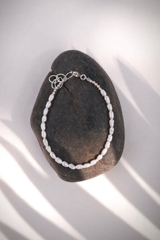 ✦ DETAILS ✦ ✧ Name: Maile (MIE-leh) - vine. ✧ Adjustable Length from: 6"-7.5" Inches. ✧ White 3-4mm Freshwater Pearls. ✧ Sterling Silver Components, Extender, and Clasp. ✧ Unless otherwise noted in the listing description, all pieces are sold individually. Photos with models/multiple pieces are for style inspiration only.