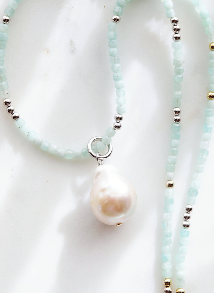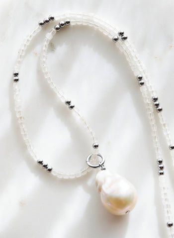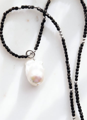 Flameball Baroque Pearl and Gemstone Necklace - Silver Keahi