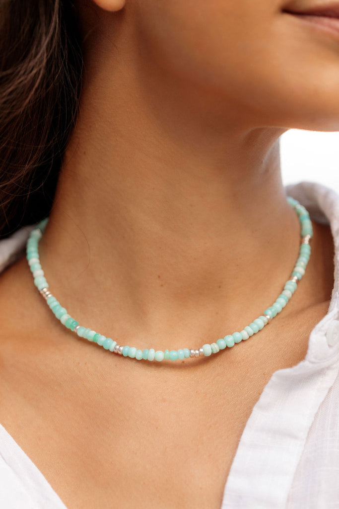 ["Anuenue","Beach Jewelry","Beaded","Beaded Gemstone","Beaded Necklace","Blue Opal Necklace","Catalogue","Gemstone","Gemstone Necklace","Gift for Her","Gift Hawaii","Hawaii Jewelry","Necklace","New","Opal Necklace","Peruvian Opal","Peruvian Opal Necklace","Silver Jewelry","Silver Necklace","Silver Opal Necklace","Sterling Silver","Turquoise Color Jewelry","Wholesale"]