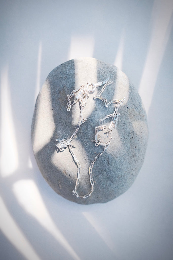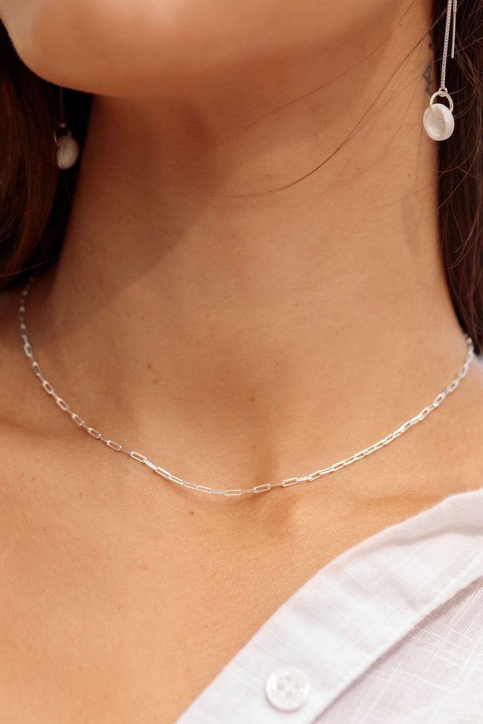 A dainty new classic, the Kei Paperclip Chain Necklace is a stunning addition to your collection. Made from Sterling Silver, this popular paper clip style chain is versatile and elegant. A striking statement worn alone or with a bevy of other beauties.